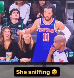 闻到啥了?绿军美女球迷对布伦森后背扮鬼脸 随后还“嗅”了一下