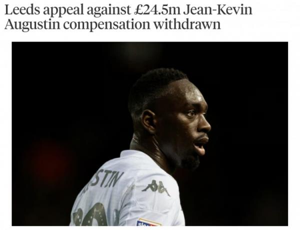 据报道,国际足联此前判定,利兹联需要向前队员让-凯文-奥古斯丁支付2450万英镑赔偿金。此后利兹联对此向体育仲裁法庭(CAS)上诉,但是目前,这项提出的上诉已经被撤回。